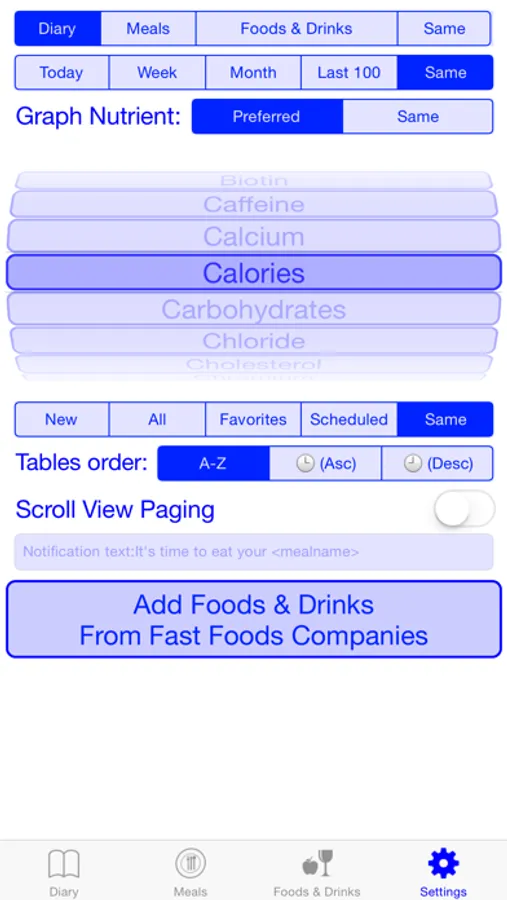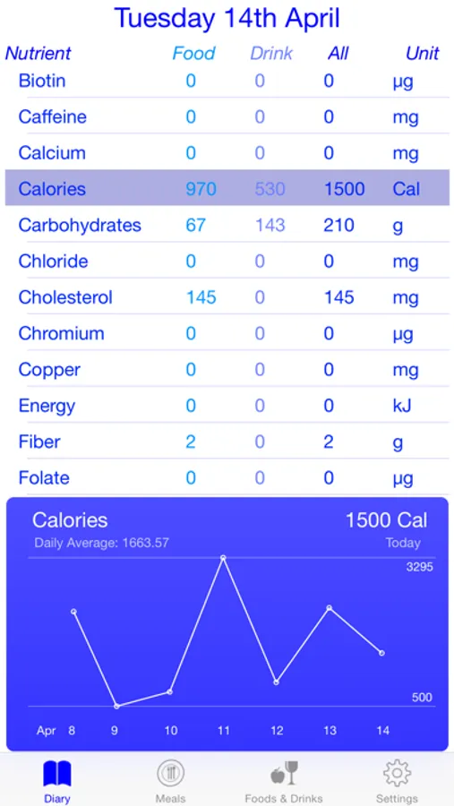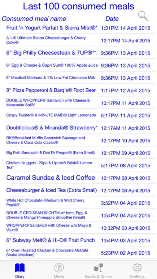 With Meals Diary you can see what meals you ate over a certain period of time.