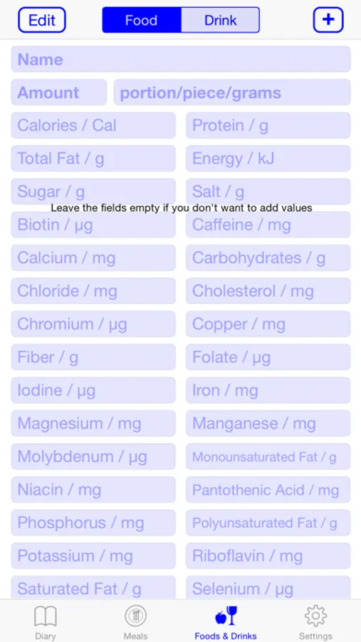 Add all the nutrients(38) of the foods and drinks chosen by you to the Health App in just two clicks on your iPhone screen.