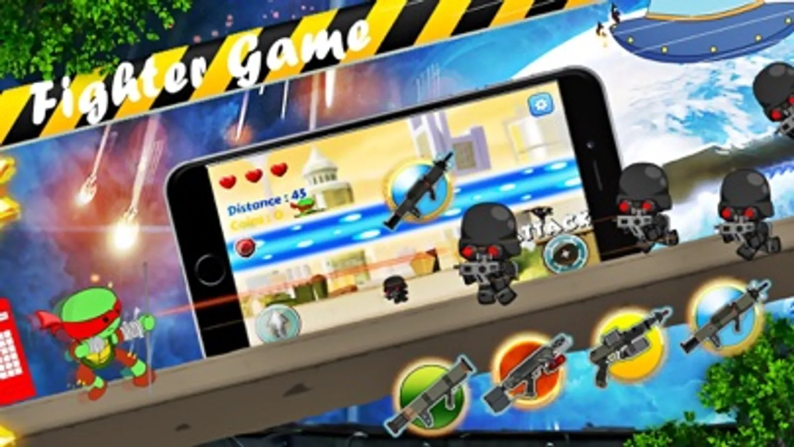In times of global catastrophes on the Earth strange changes started to happen. Here comes our heroes, The Great Turtles! They are ordered by their master to clean off the crimes in the city. But the path of being a hero is never easy, instead, it is full of frustration and trouble. Survive the challenges and traps as you defend the town and defeat the enemies.