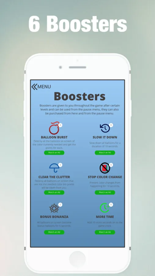 • Receive Boosters without having to pay! just watch ads and keep going!