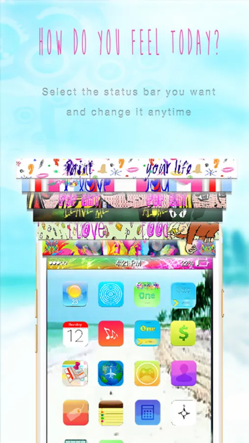 Any photo you make, you have a unique status bar to fit in. Hundreds of desgins divided among tons of different themes will create the wallpaper you really want!