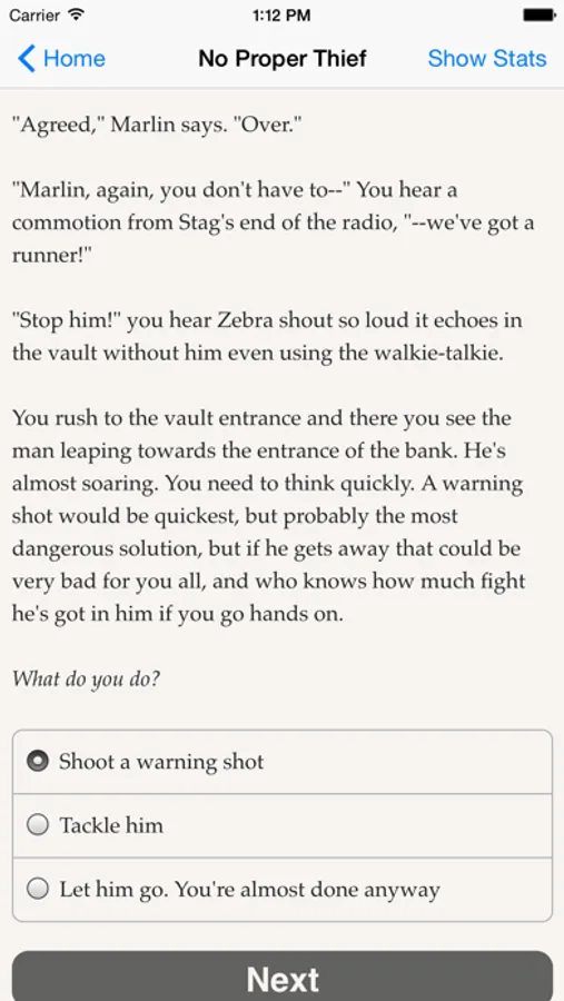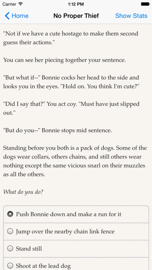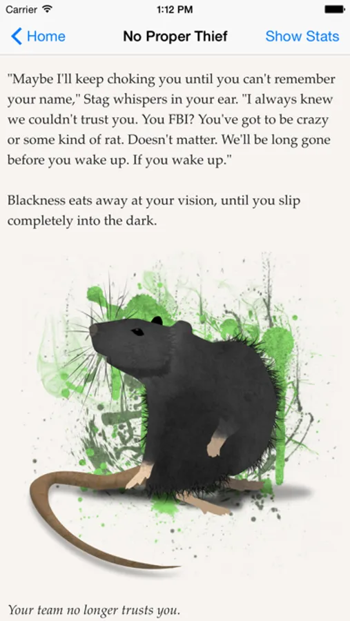 You never wanted a life of crime, but it's all you know. That doesn't mean transitioning from a life as a cocky con artist to a greenhorn bank robber doesn't scare you. In No Proper Thief you are Clyde Lamm, the Rooster, and you have a choice to make. In fact, you have dozens of choices to make throughout your upcoming adventure. Everything has consequences, too. You and your team, consisting of the leader Zebra, the muscle Stag, and the heart Marlin, have many obstacles to overcome. Still, in the midst of all the dark chaos of the initial robbery, there is a flame of positivity: an attractive young bank manager. Sure you stole her gold heirloom ring a while back, but it's a fair trade because that fox is stealing your heart.