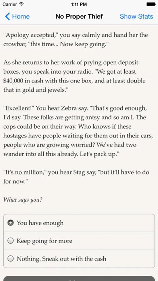Attempt to survive your first bank heist! Befriend or betray your team of bank robbers, make difficult choices, survive, go insane, fall in love, and get rich if you can in No Proper Thief, where every choice you make has a consequence.