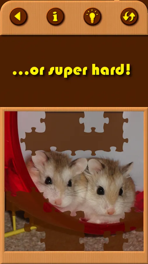 Hamster Jigsaw Puzzles - is new classical Jigsaw Puzzle solving game for your iPhone, iPad and iPod touch devices! Inside the game there are 70+ great puzzle pictures! NOTE: every puzzle can be played with up to 11 different sizes from 4 (2x2) pieces up to 144 (12x12) pieces! This game was specially designed with simple and clean user interface and very intuitive scrolling and drag & drop control of the puzzle pieces, so that everyone can easily play it!