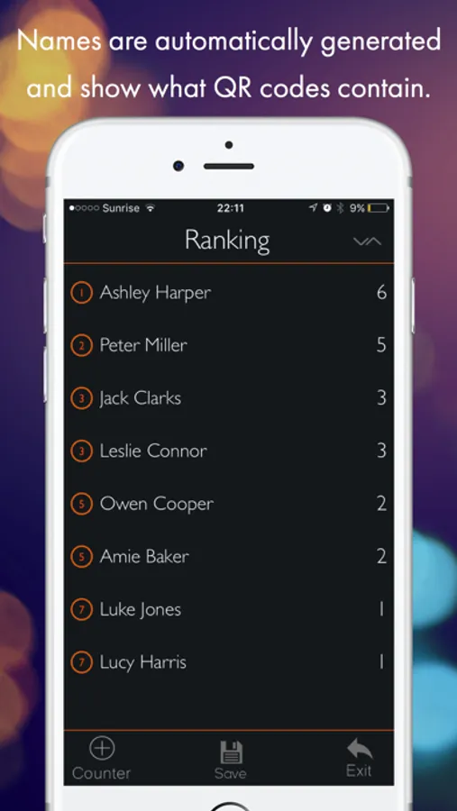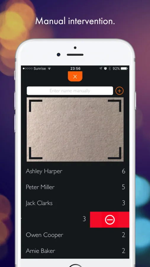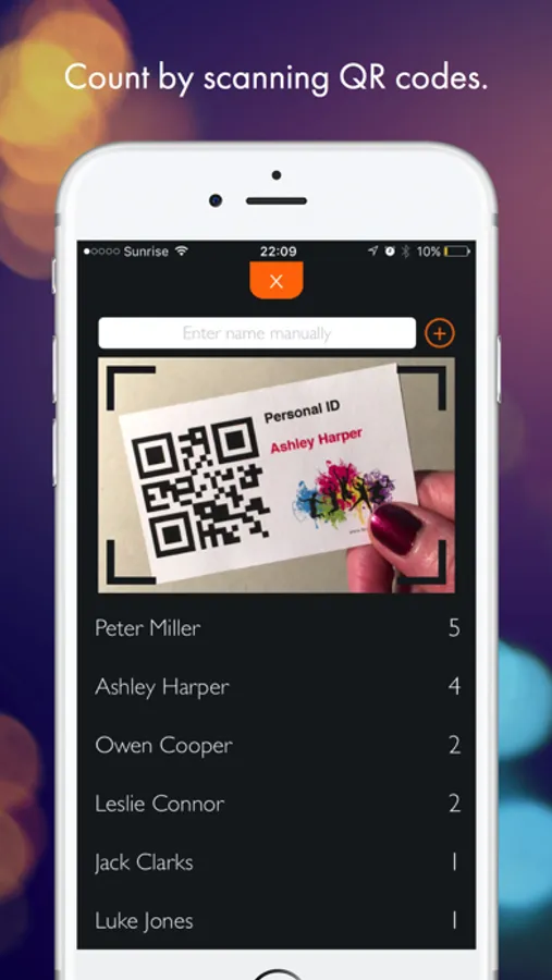 Change the result by swiping right to add 1 point. Swipe left to remove 1 point. If there is a person without QR code, it is possible to manually add a counter.