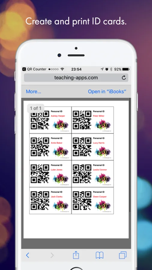 Simply type in all names/items at once and get multiple QR codes in a PDF, which you can then print and save. It couldn’t be any easier! Each QR code is embedded in a student ID card in a credit-card size. These cards can be used for different apps and uses. Be sure to subscribe to the newsletter to receive updates on any new apps.
