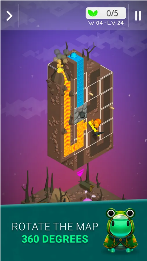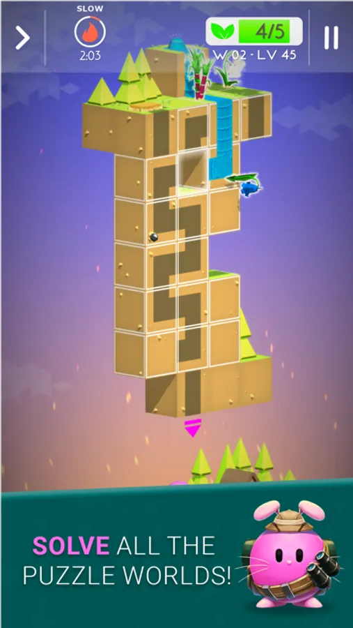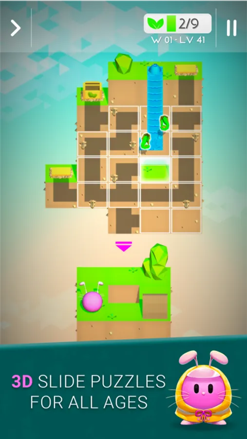 Falls is a family-friendly 3D slide puzzle game where players strategically slide blocks to create a path for flowing water to fill ponds.