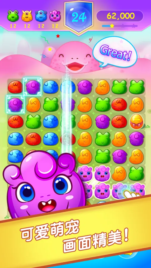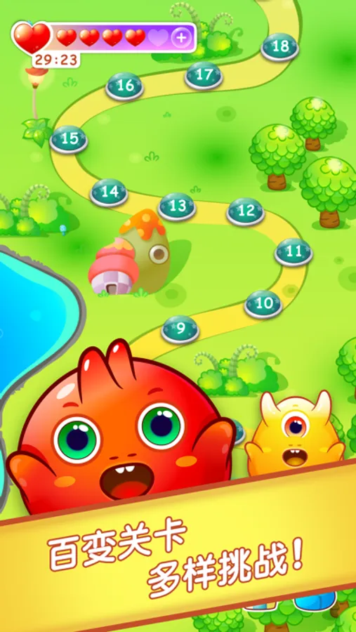 《精灵历险记》是款基于iOS平台的策略型三消游戏。玩家需要开动脑筋多次尝试,精心设计每一步。有时也需要一点小小的运气,才能在多种关卡模式中完成不同目标。游戏画面清新亮丽,音乐动听,关卡丰富,挑战多多,是一款不断冲击新乐趣的游戏!憨厚的黄精灵、快乐的红精灵、淡定的绿精灵、狡黠的蓝精灵、深沉的紫精灵,带你一起去历险。新手奖励、过关奖励,各种奖励道具送不停,赶快来领取吧。