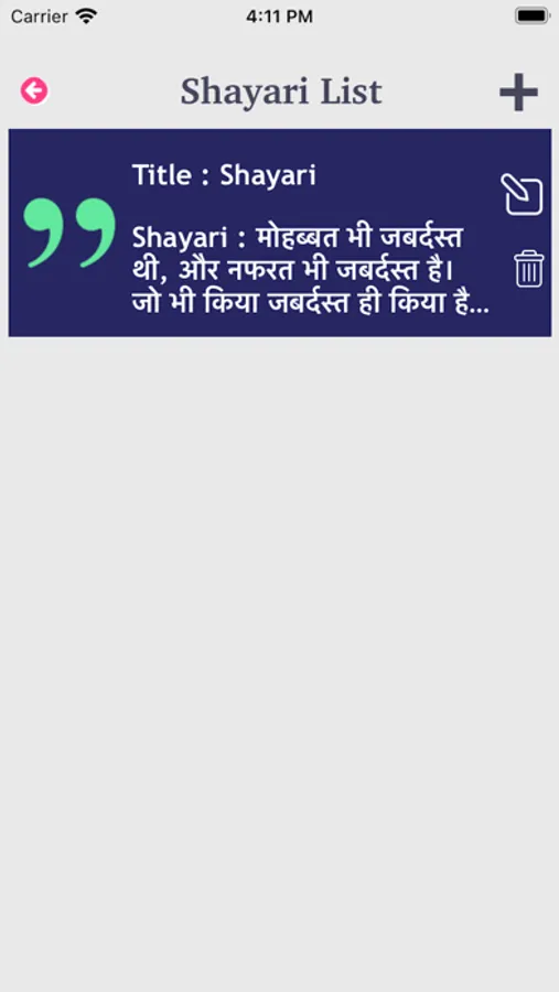 In this application you can find the largest collection of Hindi Shayari Only in Hindi Language.