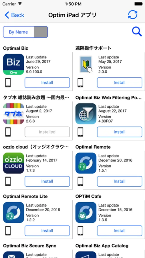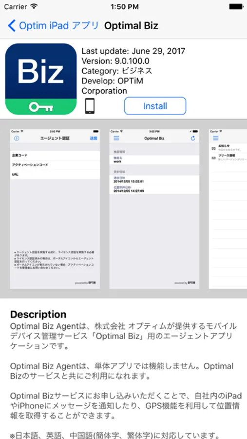 Optimal Biz App Catalog is a part of, and is used in conjunction with OPTiM Corporation's mobile device managements service "Optimal Biz".