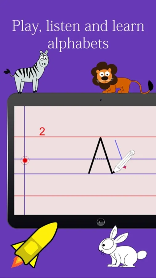 The app aims to teach kids recognition of alphabets by creating them utilizing different shapes and styles, while also teaching the phonics and three words associated with each letter.