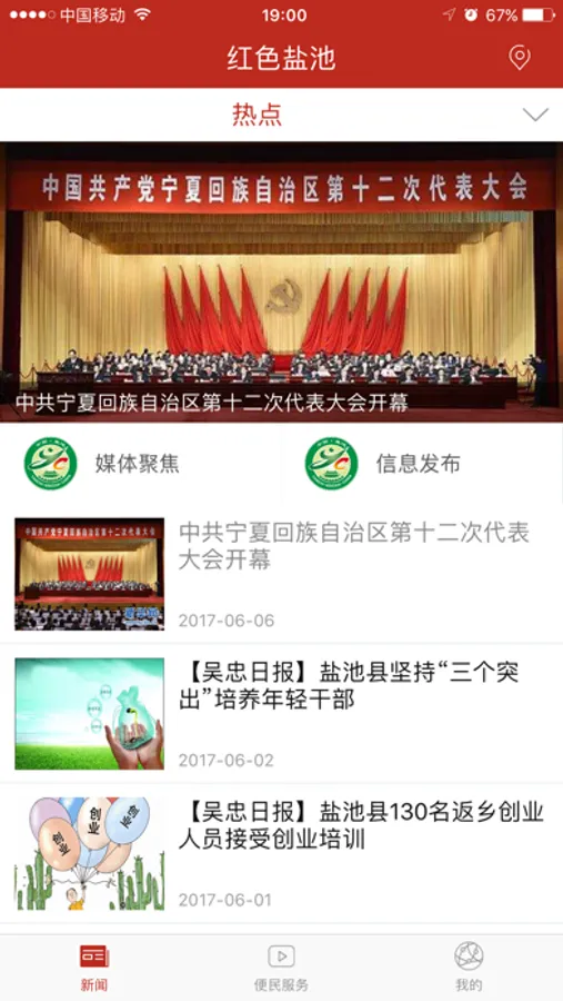 “红色盐池”是盐池县委和新华社宁夏分社共同打造的一款手机客户端应用程序。涵盖了盐池县各项政务公开和便民服务内容,以及新华社的文字、图片、视频等资讯,同时提供便民信息、美食餐饮、休闲娱乐等生活资讯,嵌入微博、微信等交互模块及多项网络政务平台,以最便捷的方式,为本地市民和外地游客提供全方位的信息资讯和政务服务。