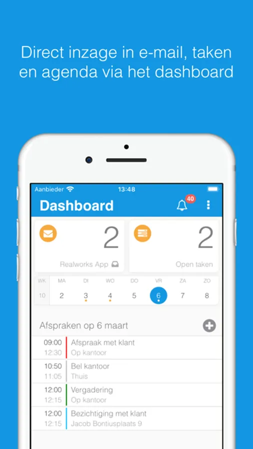 De Realworks CRM app is de perfecte koppeling tussen mobiel werken en Realworks CRM.