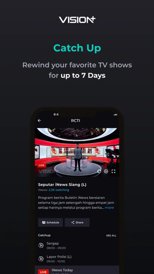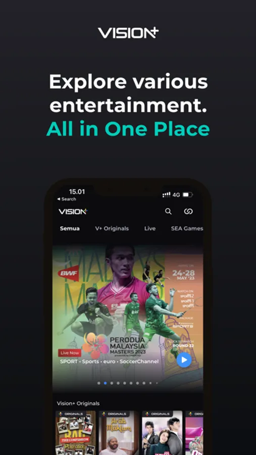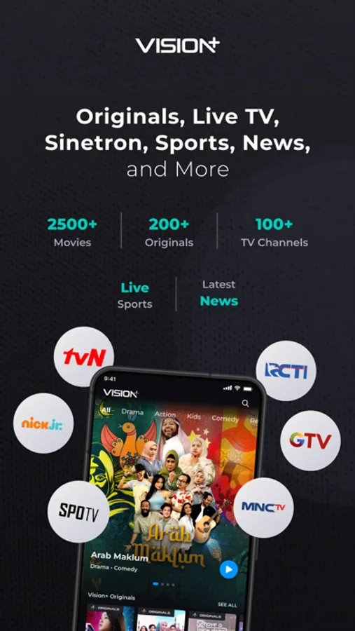 Vision+ : One app with million entertainment! Enjoy various live streaming services from national to international TV channels, watch 254.000+ hours of movies and series, play in-app games, and watch new exclusive Original series every month.