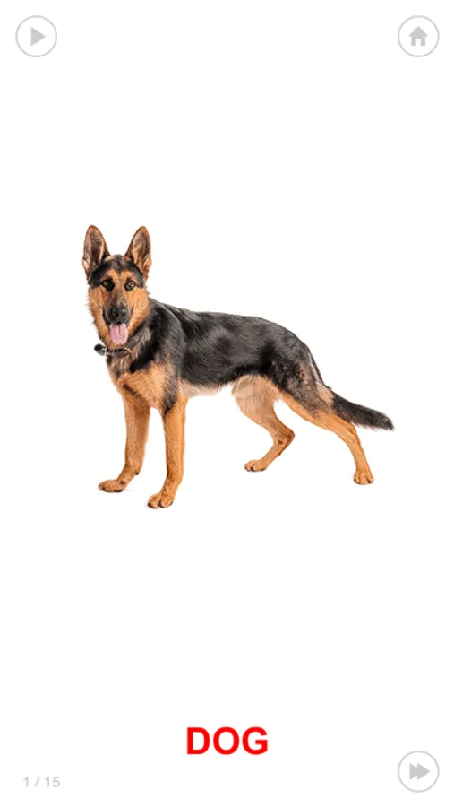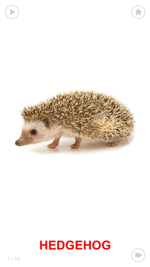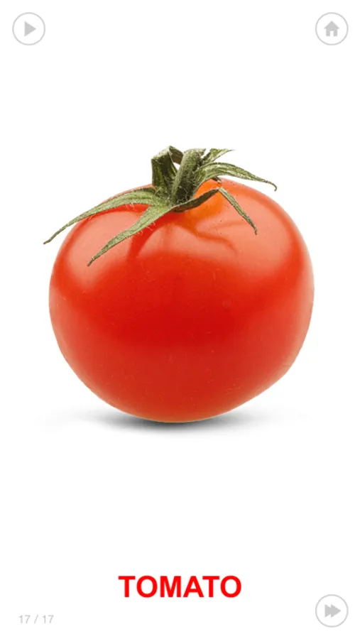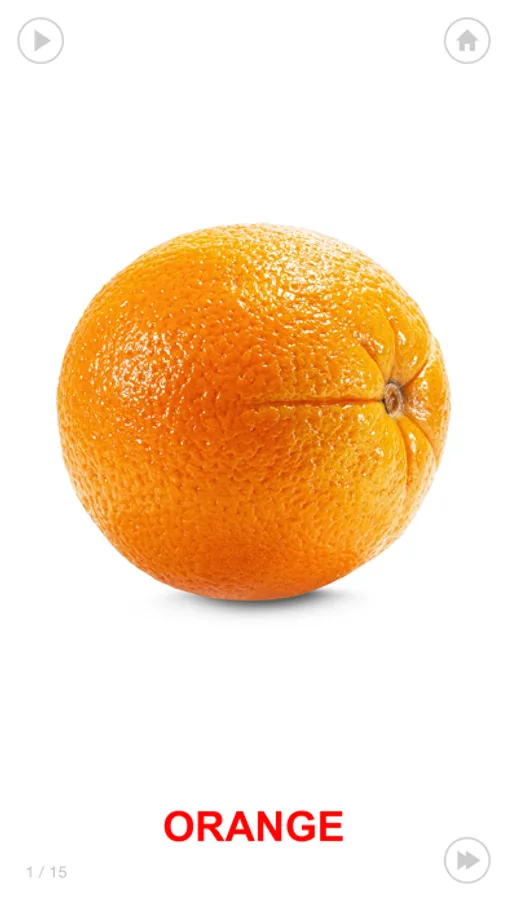 Cards are realistic pictures with white background which are grouped by themes. There’s a name of an object under every picture. Narrator pronounces the name of each object to help your child remember what is on the picture and how to spell its name.