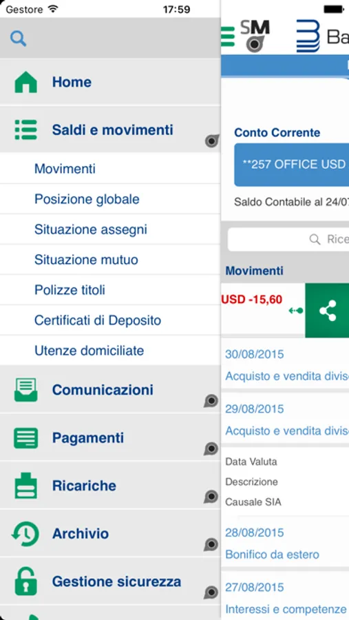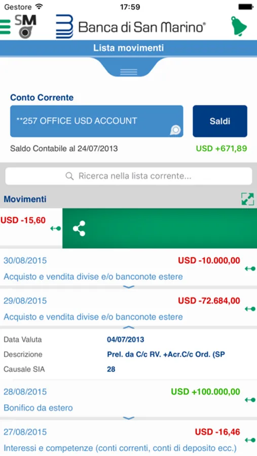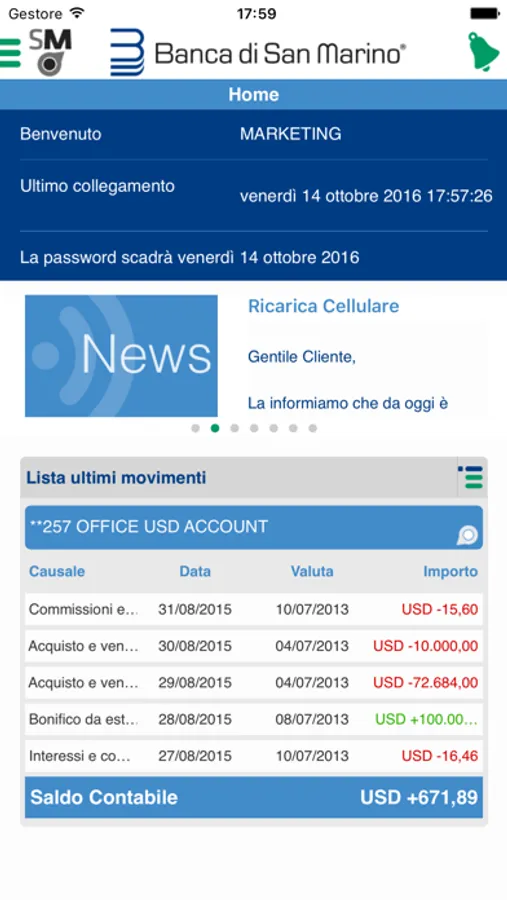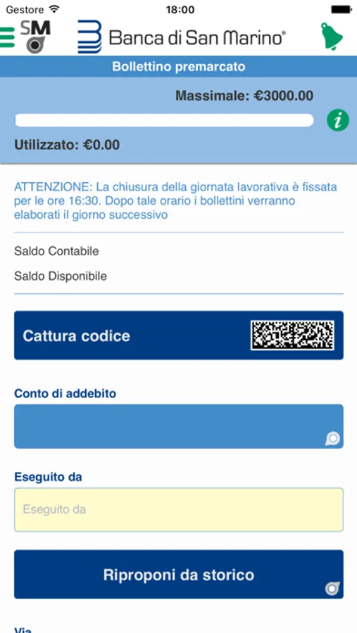 Il servizio è completamente gratuito per tutti i correntisti di Banca di San Marino. Con BSM Mobile puoi visualizzare i numeri utili, contattare le filiali e bloccare la carta di credito e debito. Inoltre effettuando l’accesso puoi: