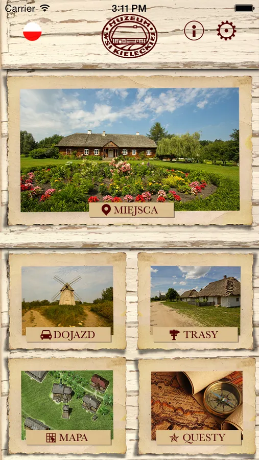 Aplikacja prezentuje nie tylko obiekty, z których każdy posiada zdjęcie, współrzędne geograficzne oraz opis, ale także proponuje turystom zwiedzanie skansenu wraz z przygotowanymi trasami o różnej długości. Ciekawym elementem aplikacji są questy, czyli wierszowane zagadki, których rozwiązywanie prowadzi użytkownika przez kolejne obiekty. Dzięki nim użytkownik może poznać tradycyjne zawody wsi kieleckiej, zgłębić tajemnic dawnych wierzeń, czy też zapoznać się z pracą młynarza i niciorza.