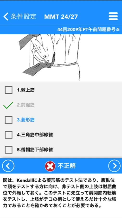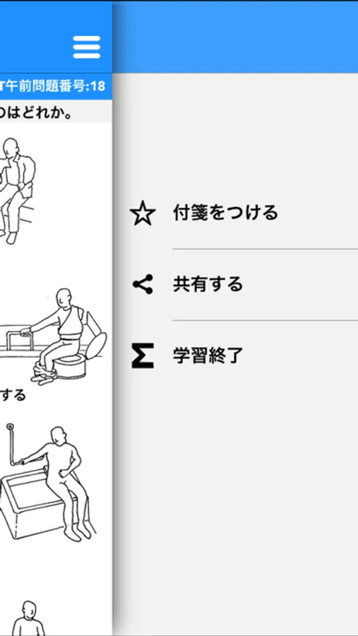 過去8年分の国家試験問題をもとに構成。現役教員による解説付き。出題順や選択肢表示順を変更できるほか、メールやtwitterで問題テキストを共有できる、理学療法士国試対策の分野別問題集アプリです。