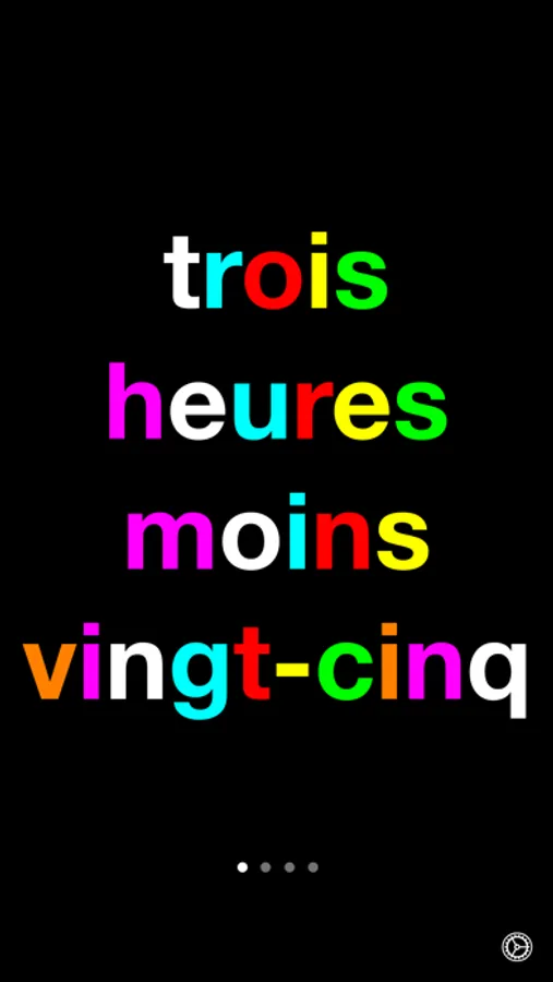 'A Word Clock' is an app that shows the current time as words in more or less five minute intervals. Several color schemes are available, black & white, changing over day.