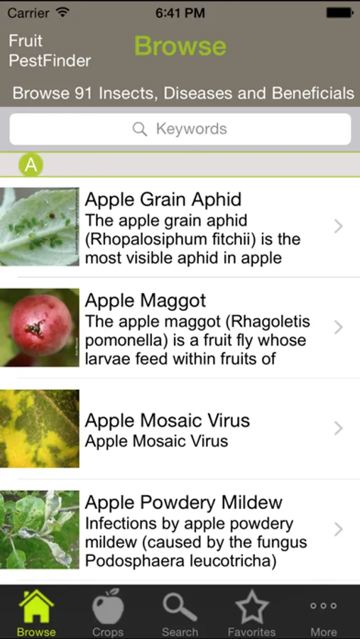 Fruit PestFinder is a handy resource to help identify and control pest problems of temperate fruit crops in the western U.S. The app currently includes over 70 insects and diseases of apple, pear, cherry, peach/nectarine, and plum, with more crop hosts to be added. Discover each pest’s biology, symptoms, and full management recommendations. Also, learn to identify 18 of the most common beneficial insects that target western US fruit pests.