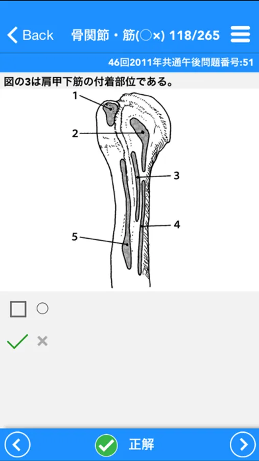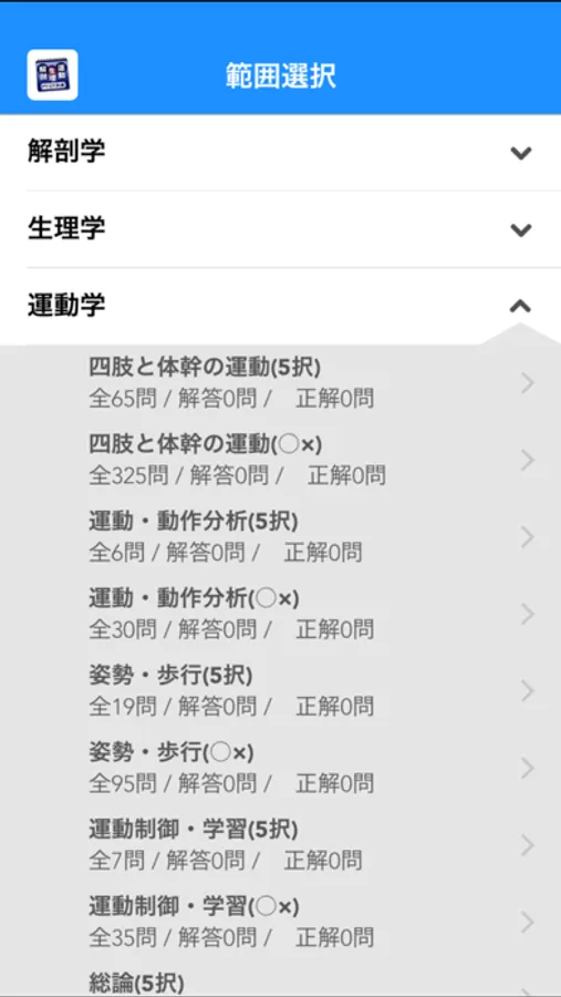 5択問題を○×問題に改変した問題も同時収録。出題順や選択肢の表示順を変更できるほか、メールやtwitterなどSNSで問題テキストを共有できる、理学療法士・作業療法士の分野別国家試験対策アプリです。