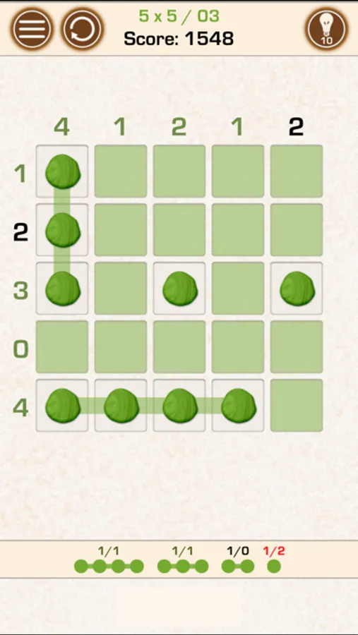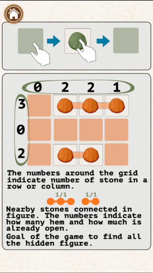 The numbers around the grid indicate number of stones in a row or column.