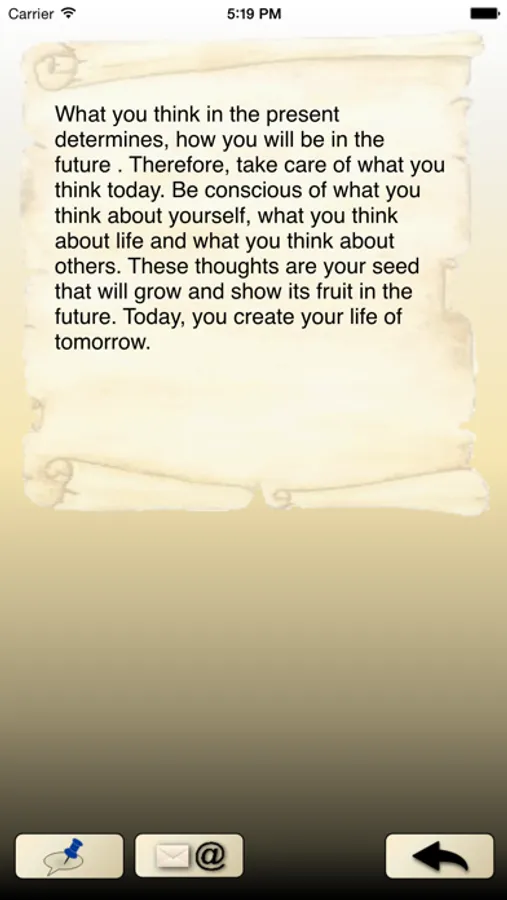 Your life consists of your personal PERCEPTION OF LIFE, which you create yourself. Your perception of life is the result of your thoughts and feelings and nothing else. You are what you think you are. You think about 40,000 thoughts each day; most of them unconsciously and, further more, the same thoughts over and over again. You create your entire perception of life by what you think. The aim of this program is to teach you to recognize wrong and untrue thoughts and remove them from your mind vocabulary. This will change your life completely. It will bring you to yourself, to inner balance, which is the basis for a healthy mind and body. It will lead you to pleasure and joie de vivre, which is the basis for happiness. It will give you self-confidence, trust and inner strength, which is the basis for prosperity. It is a new and exciting way on which you embark. It is the path to the most important person in your life, to yourself and to a joy of life that you have not previously thought possible. You decide whether you want to start on this path.