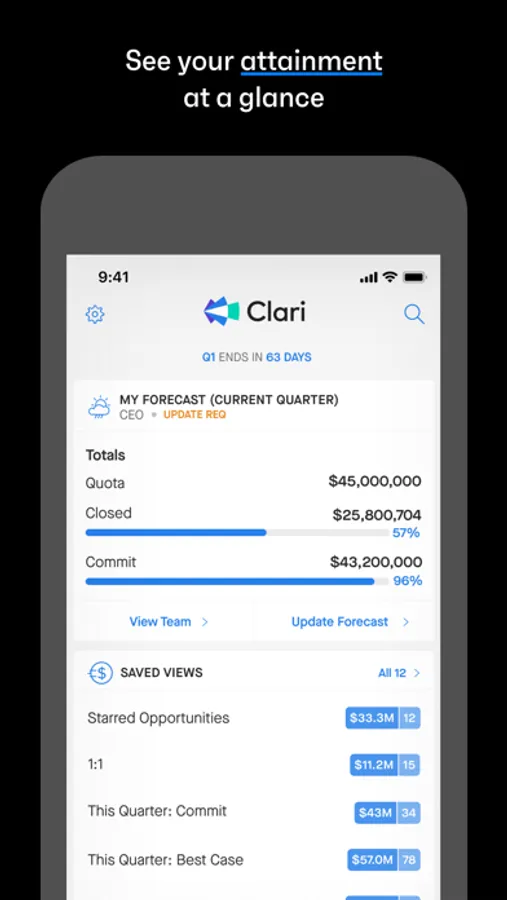 - Track attainment from anywhere, for immediate visibility into team performance.