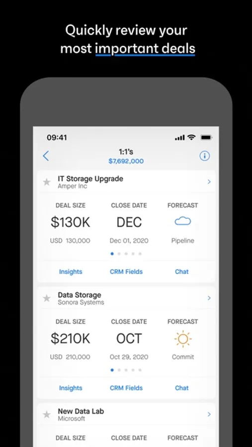 - Inspect pipeline, account engagement, and key deals on the go.