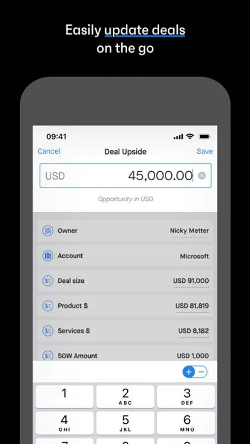 - Update opportunities quickly and painlessly, giving back more time to sell instead of managing CRM records.