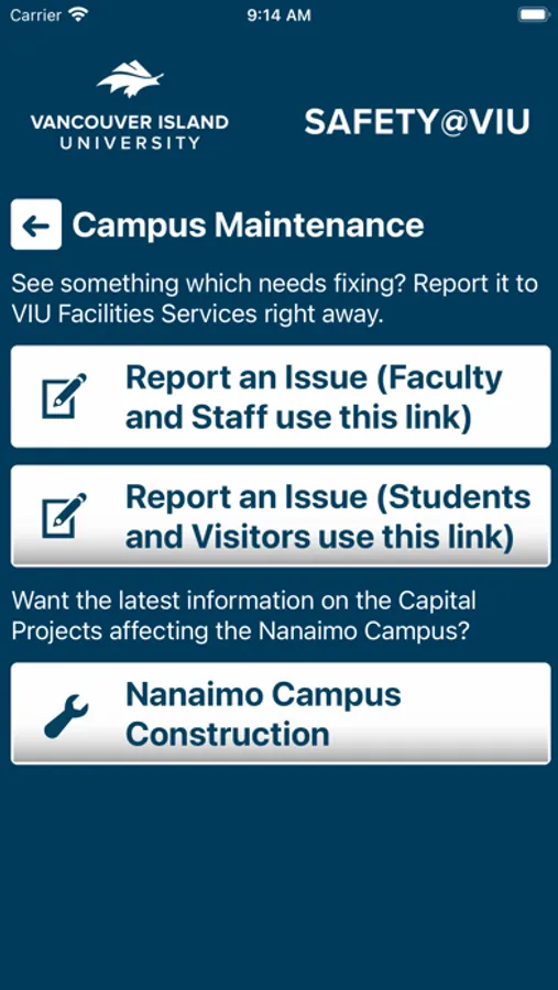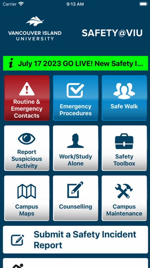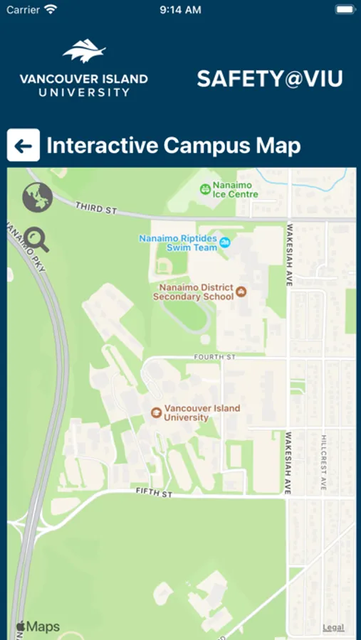 VIU Safety is the official safety app of Vancouver Island University. It is the only app that integrates with VIU's safety and security systems. The VIU the Facilities and Ancillary Service department has worked to develop a unique app that provides students, faculty and staff with added safety on the VIU campus. The app will send you important safety alerts and provide instant access to campus safety resources.