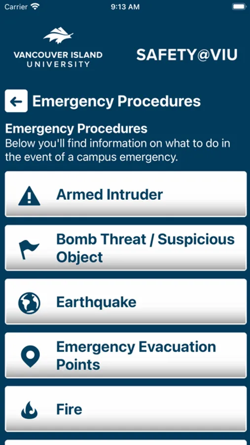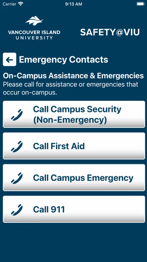 - Emergency Contacts: Contact the correct services for the VIU area in case of an emergency or a non-emergency concern.