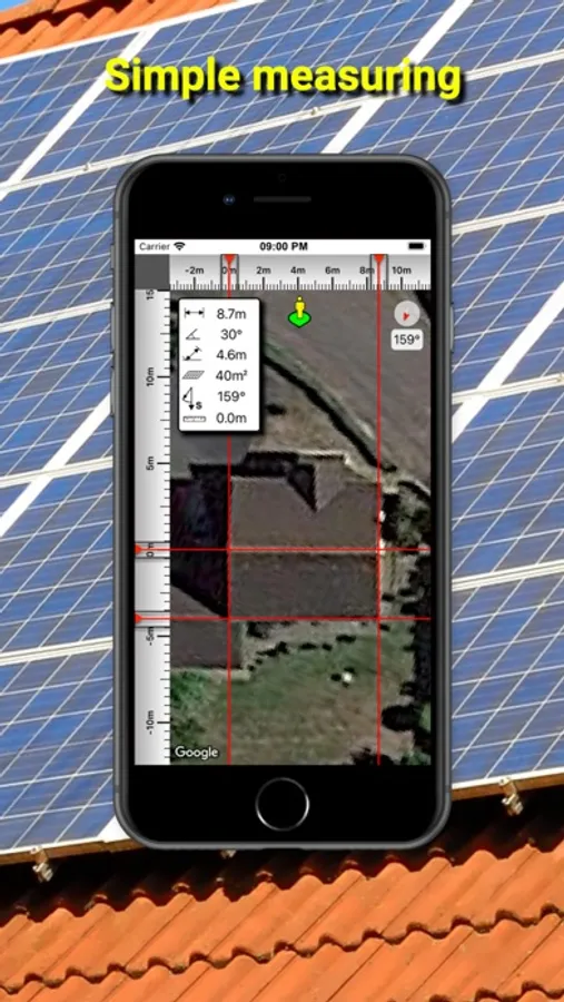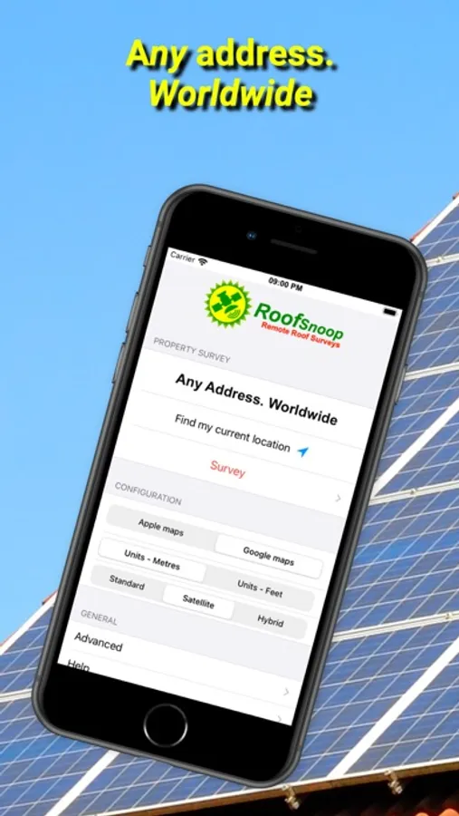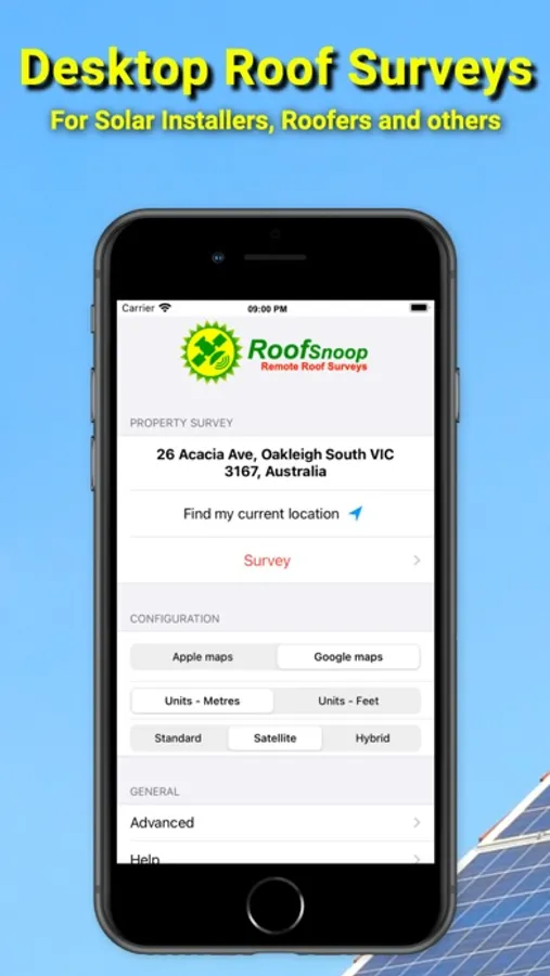 Use Apple or Google maps and satellite imagery to easily locate and measure a potential roof for suitability of a solar-PV or thermal installation.