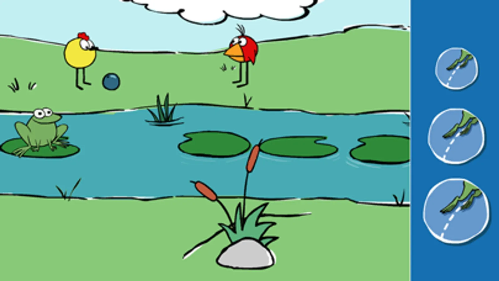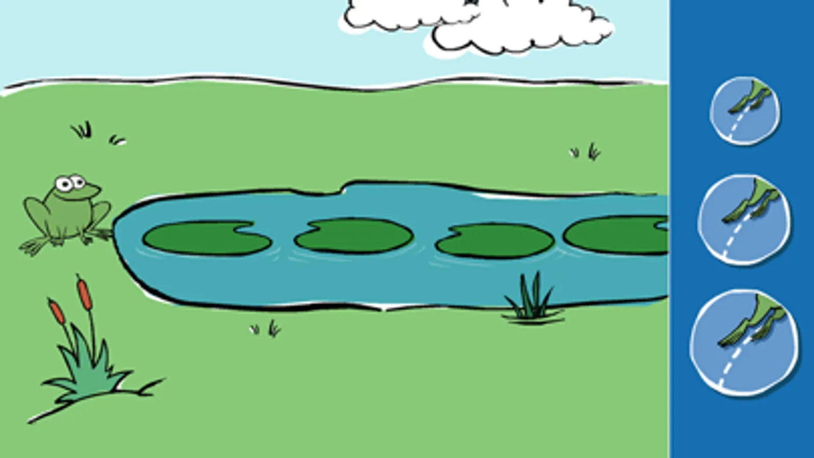Tapping the different buttons lets Frog choose a small, medium or long jump. Missing a lily pad lands Frog in the water. But don't worry: she'll be ready to start again when she hops out a moment later!