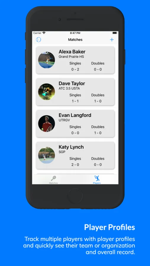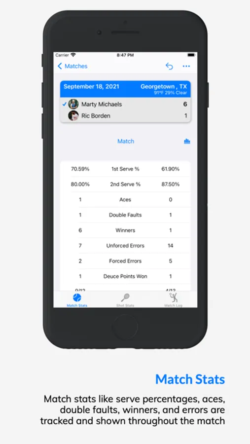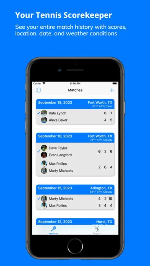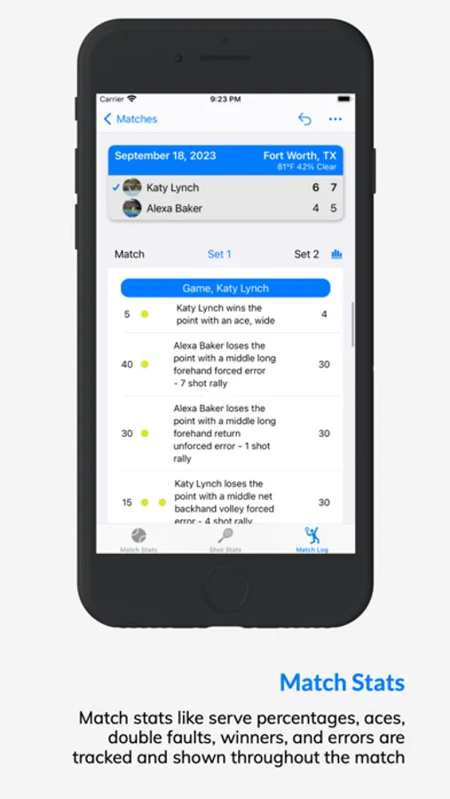 Whether you're scoring your child’s match or watching the pros, MatchTrack keeps you updated on how the match is going.