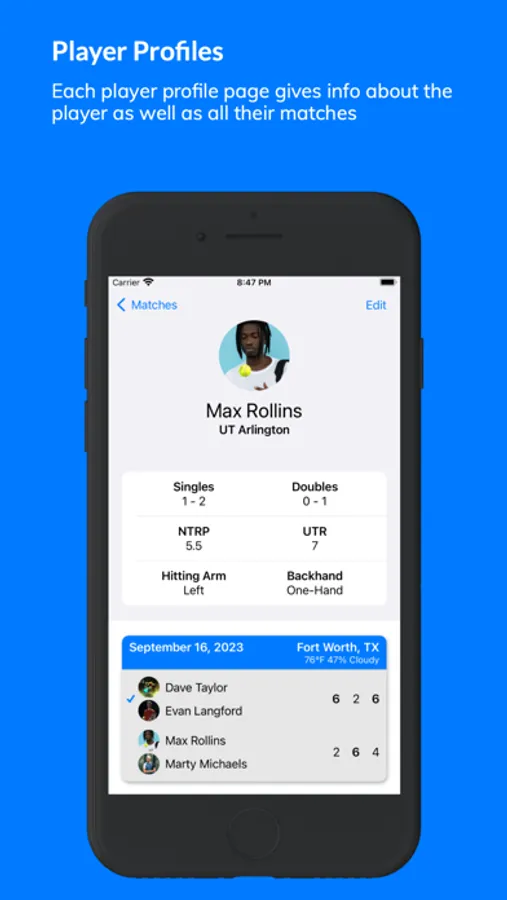 Match stats are updated in real time and are available right on the scoring screen on your iPhone, no need to click around to find what you’re looking for.