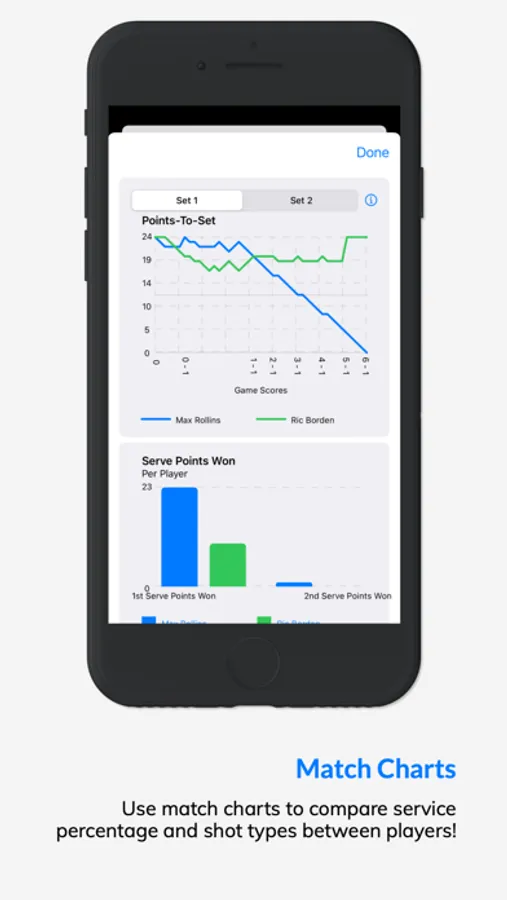 MatchTrack is an advanced tennis score keeper and charting app. It is the easiest to use tennis tracking app available for iOS and doesn’t require an account or any personal information at all!