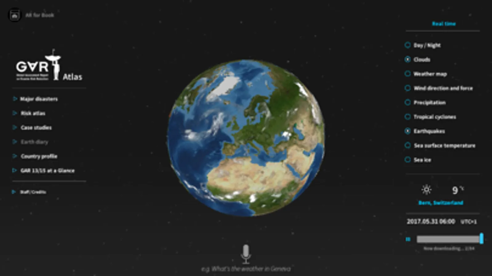 GfT (GAR for Tangible Earth) 2017 is a fully interactive free application on disaster risk reduction provided by UNISDR. Disaster data and statistics from throughout the scientific community is brought together in an easy-to-compare or "mash-up" format by the interface and scenario-building innovations from the Tangible Earth platform developed by ELP (Earth Literacy Program).