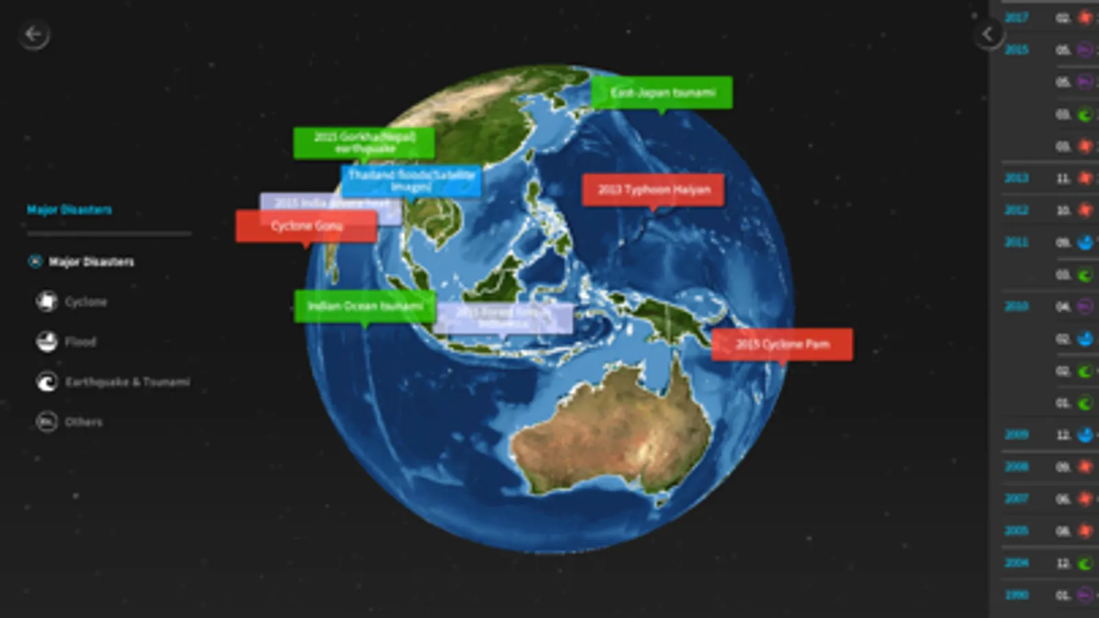 Review the historical records of significant disasters (Cyclones, Floods, Earthquake, etc) around the world.