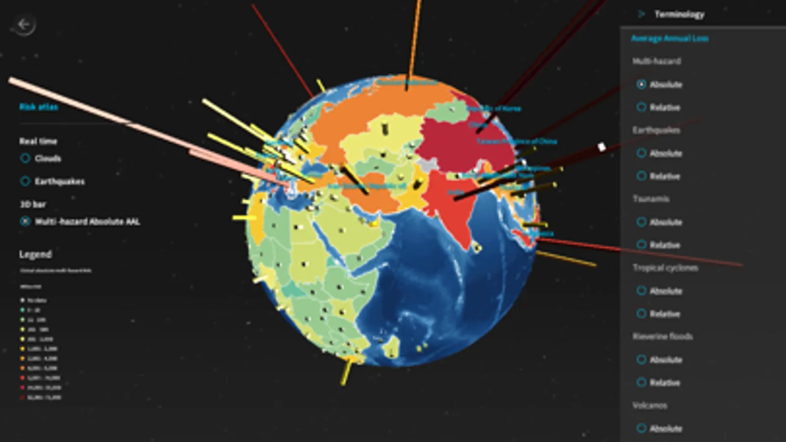 Grasp the global landscape of disaster risks, visualised on an intuitive and dynamic 3D globe. Risks are quantitatively comparable beyond regions and type of hazards.