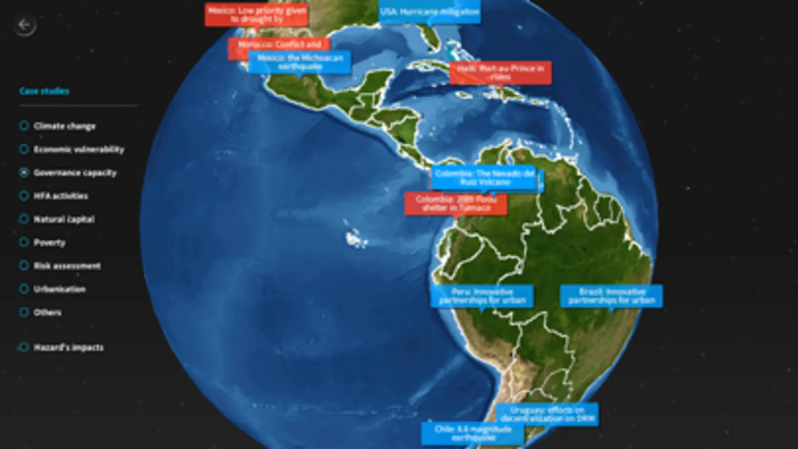 Activate the camera icon on the application and point your tablet at any of the maps in the printed version of GAR Atlas to “pop-out” further insights.