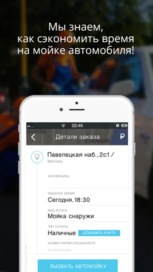 - Мойку можно заказать, находясь на удалении от автомобиля, даже в другом городе!