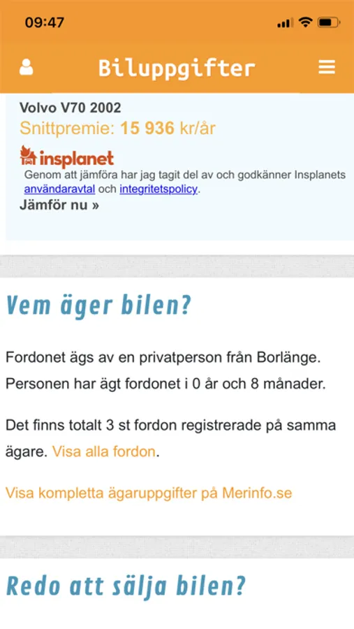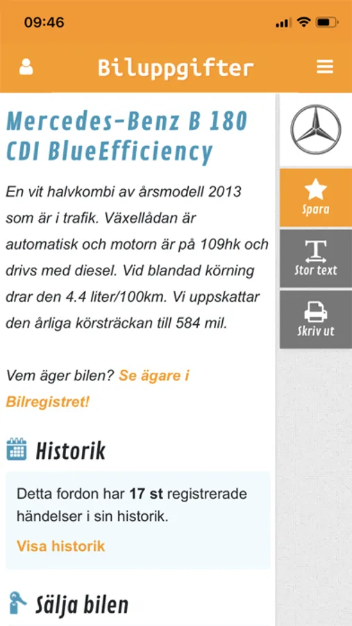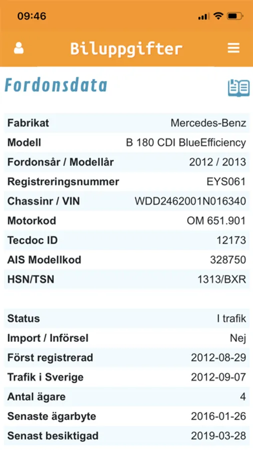Se ägare, historik, värdering och teknisk data om alla fordon i vägtrafikregistret/bilregistret. Vi använder samma grundinformation som Transportstyrelsen och kompletterar med ägaruppgifter, bilvärdering, unik historik, bilvård- och rostskyddsbehandlingar, skuldkontroller, försäkrings- och lånekostnader.
