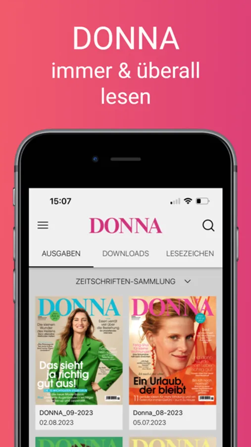 DONNA ist für erwachsene Frauen gemacht. Es geht um die besonderen Wünsche, Träume, Bedürfnisse, Fragen und Ansprüche, die Frauen ab 40 Jahren haben. Von DONNA können Sie all das erwarten, was eine gute Frauenzeitschrift ausmacht: Mode, Beauty, Lifestyle, Interviews, Psychologie, Partnerschaft, Gesundheit, Kultur, Reise und Service. DONNA inspiriert Frauen ab 40, die bei sich selbst angekommen sind und nun optimistisch in eine neue Phase aufbrechen.