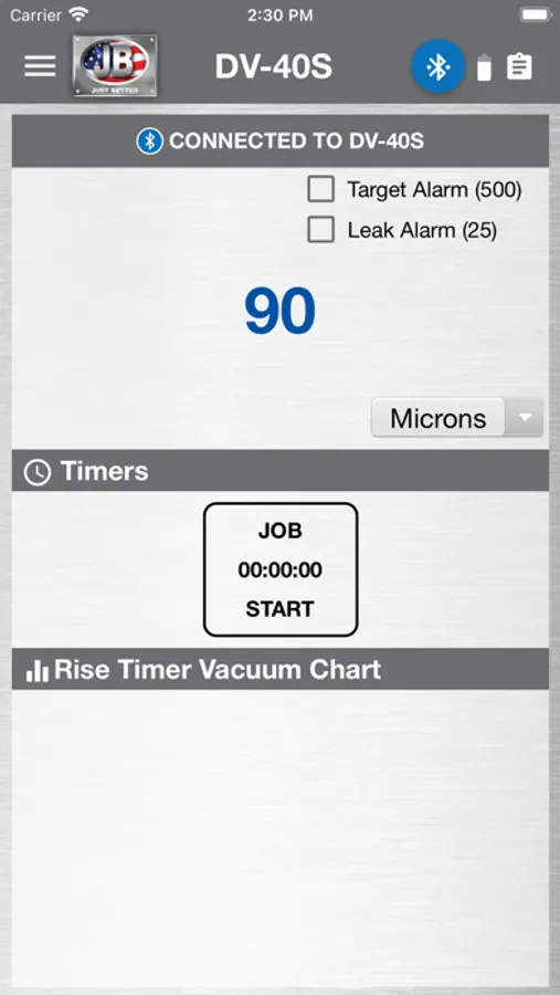 Wireless micron gauge from JB Industries, Inc. that allows user to view vacuum measurement. Alarming capabilities, colored themes, unit of measure options, and job timers are just a few of the advanced features included. Data logging is also provided with ability to save and email logs.