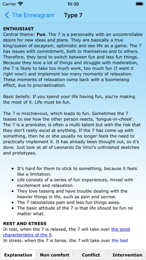 * Advanced self-assessment: with this test, you will get a clear image of yourself. EnneagramPro offers profound insights, in understandable language, about your character, your personal non comfort zone and your conflict sensitivity.