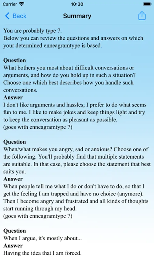 * Assessment of someone else: with this test, you can identify the enneagram type of someone else.