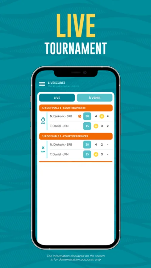 Available on mobile and tablet, the application gives the possibility to follow in live the Monegasque week through live-scoring matchs, results updated in real time or the player’s stats.