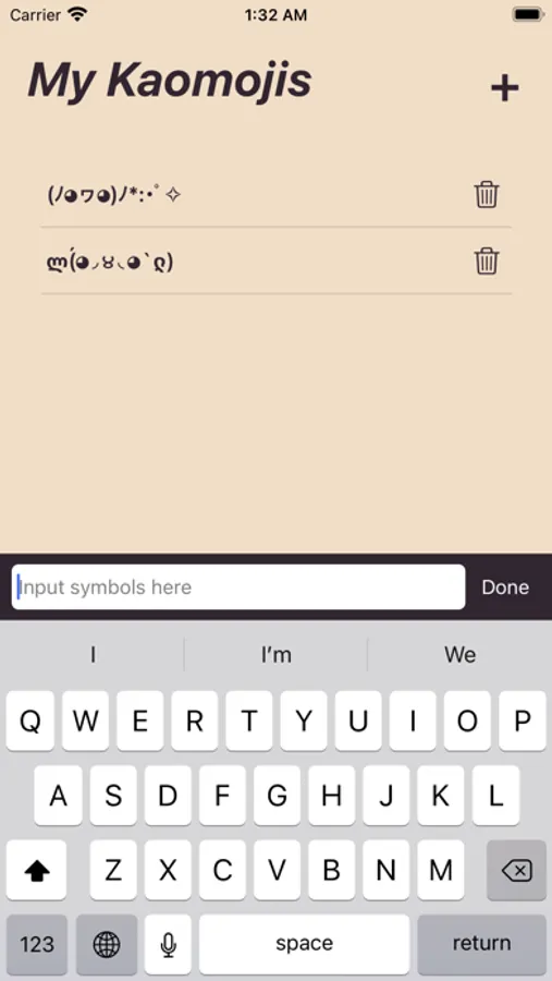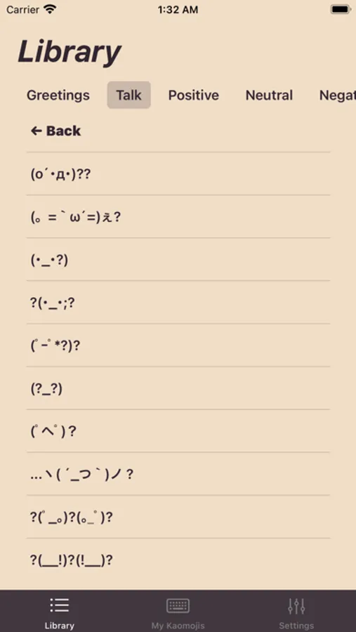 Easy to send Kaomoji with others via any social network like Twitter, Facebook, Instagram and Messenger. ( ゚▽゚)/