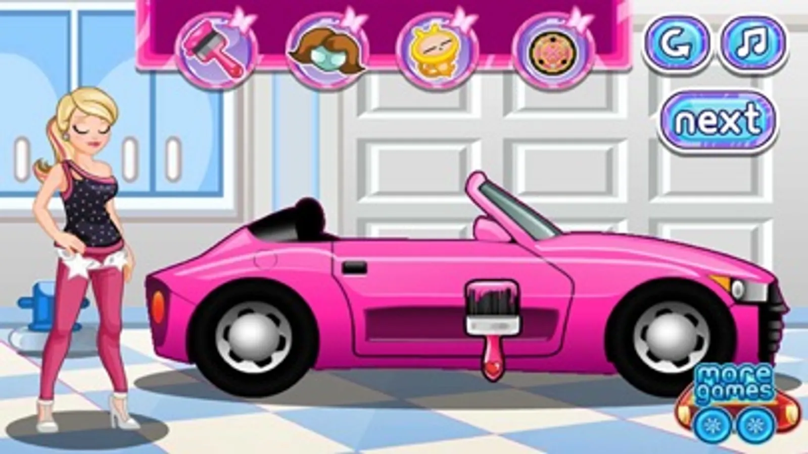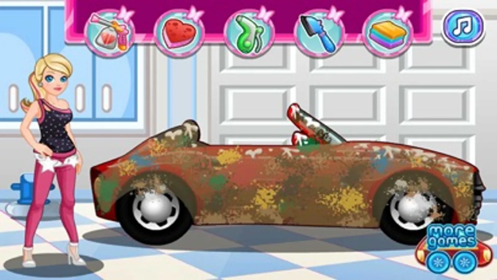 Ken just borrowed barbies car and made a mess when he return it. help barbie clean her car and make some decorations on it too! this is a nice car to clean. if you are a teen girl you will love the barbie convertible.